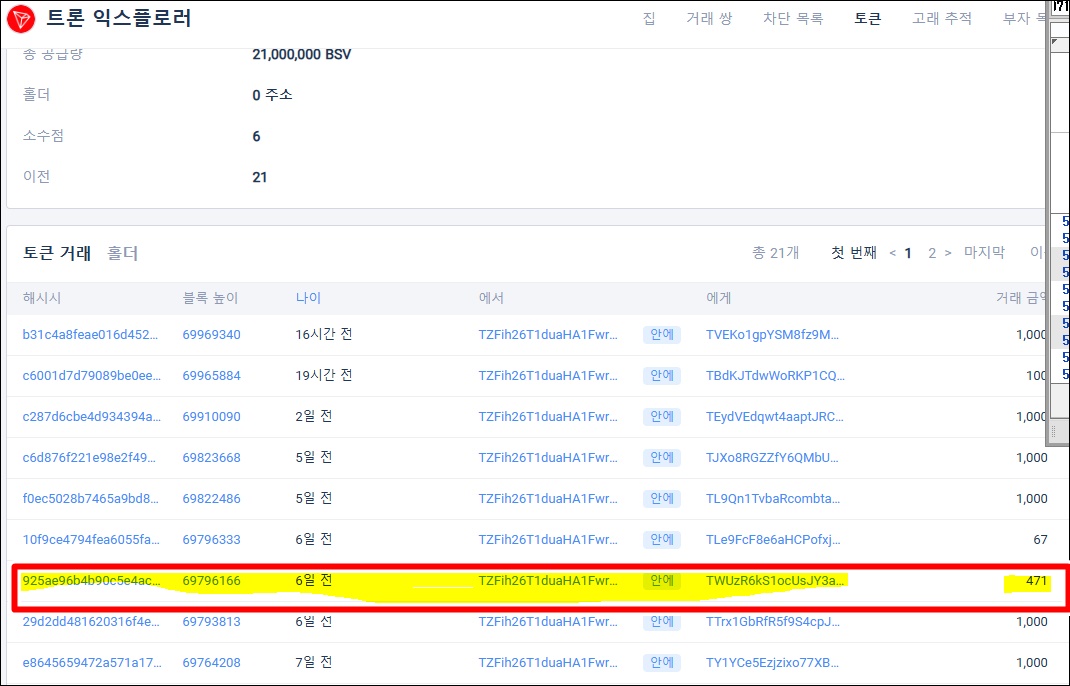 2-1. TRX 토큰 뷰 익스플로러 접속