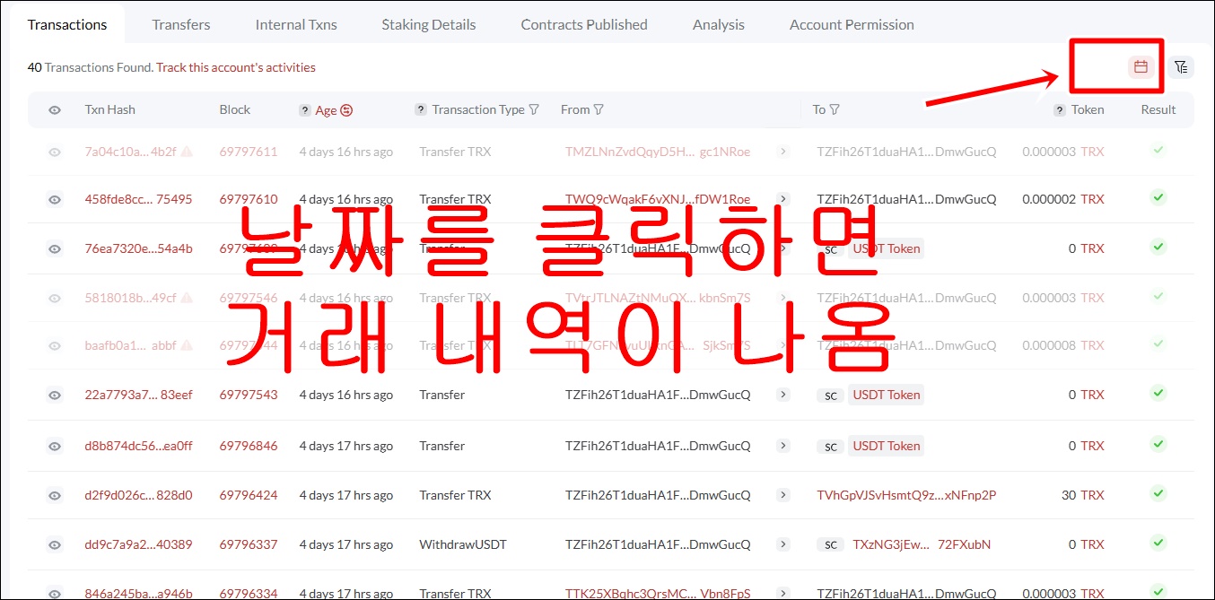 4. 테더(USDT) 거래 내역 확인하기