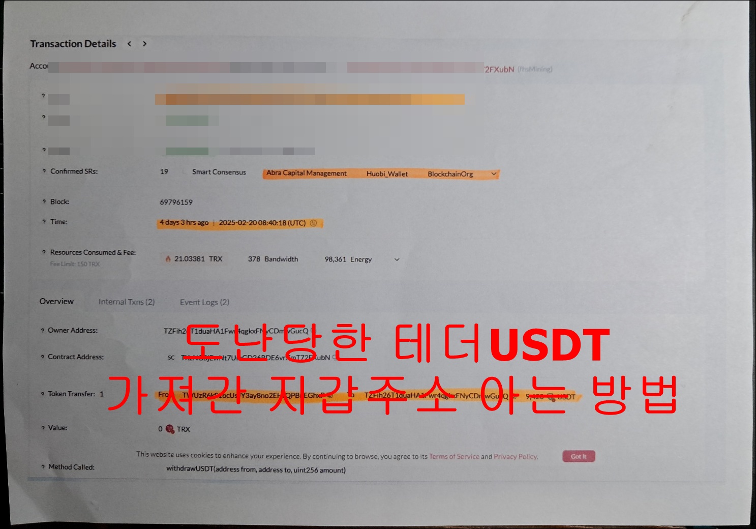 트론스캔(Tronscan)에서 도난당한 USDT를 추적하는 방법