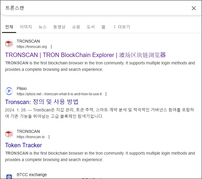 트론스캔에 접속한 후, 화면 상단의 검색창에 내 트러스트 지갑 주소를 입력합니다. 그러면 해당 지갑에서 발생한 모든 거래 내역을 확인할 수 있습니다.